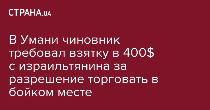 В Умани чиновник требовал взятку в 400$ с израильтянина за разрешение торговать в бойком месте