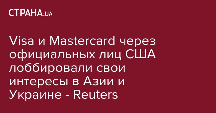 Visa и Mastercard через официальных лиц США лоббировали свои интересы в Азии и Украине - Reuters