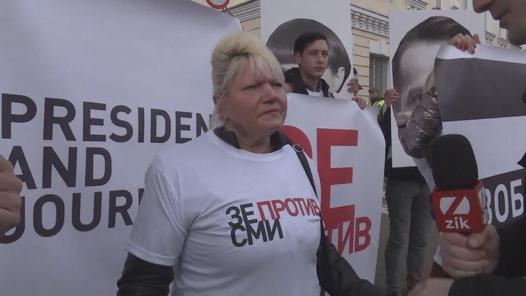 Митингующие с плакатами "Зеленский против свободы слова" и в футболках "Зе против СМИ" заявляют, что сами хотят решать, какие каналы им смотреть.