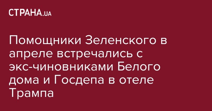 Помощники Зеленского в апреле встречались с экс-чиновниками Белого дома и Госдепа в отеле Трампа
