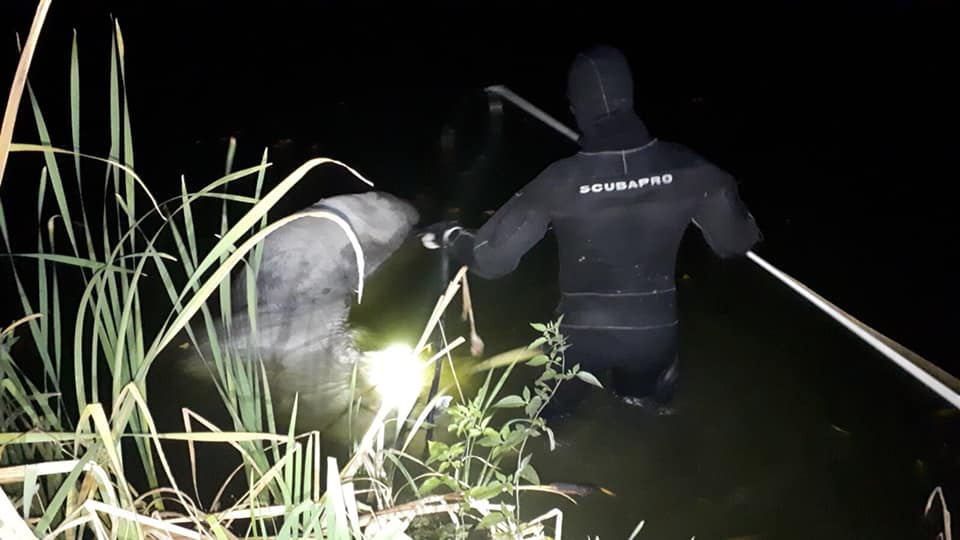 С помощью водолазно-спасательного снаряжения спасатели вытащили тушу на берег и передали ее владельцам.