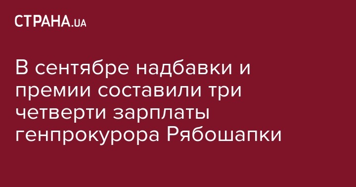 В сентябре надбавки и премии составили три четверти зарплаты генпрокурора Рябошапки