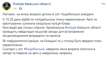 Похищенного в Коцюбинском младенца нашли в среду днем. Ребенок жив и невредим, в дальнейшем его осмотрят медики.