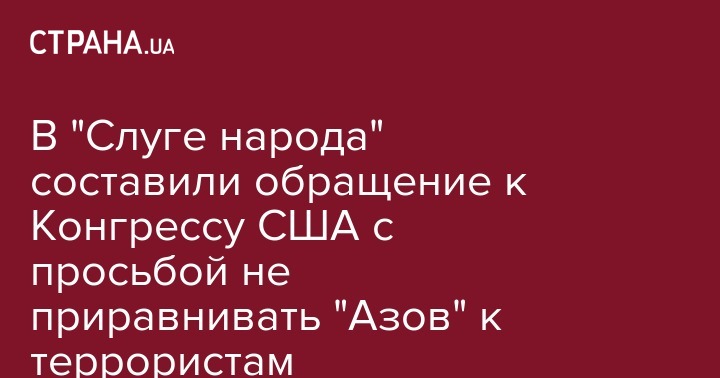 В "Слуге народа" составили обращение к Конгрессу США с просьбой не приравнивать "Азов" к террористам