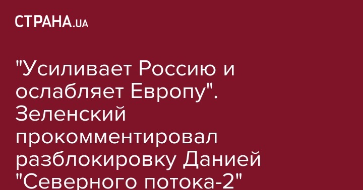 "Усиливает Россию и ослабляет Европу". Зеленский прокомментировал разблокировку Данией "Северного потока-2"