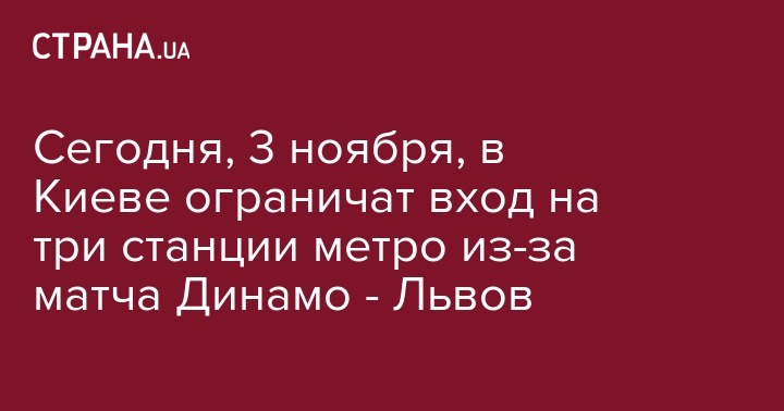 Вечером в воскресенье, 3 ноября, из-за матча на НСК "Олимпийский" футбольных команд Динамо и Львов возможны изменения в работе столичной подземки. Об этом сообщается на сайте КП "Киевский метрополитен".