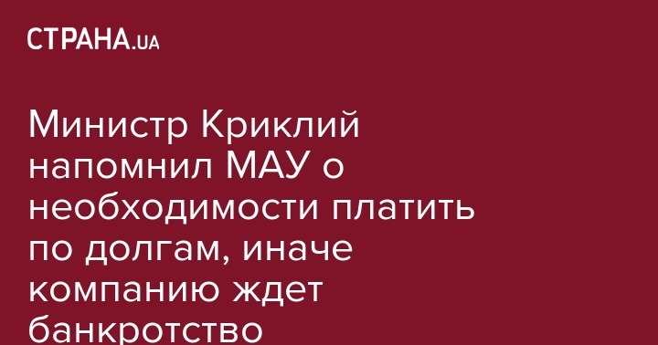 Министр Криклий напомнил МАУ о необходимости платить по долгам, иначе компанию ждет банкротство