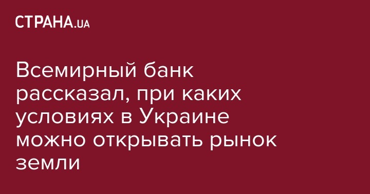 Всемирный банк рассказал, при каких условиях в Украине можно открывать рынок земли