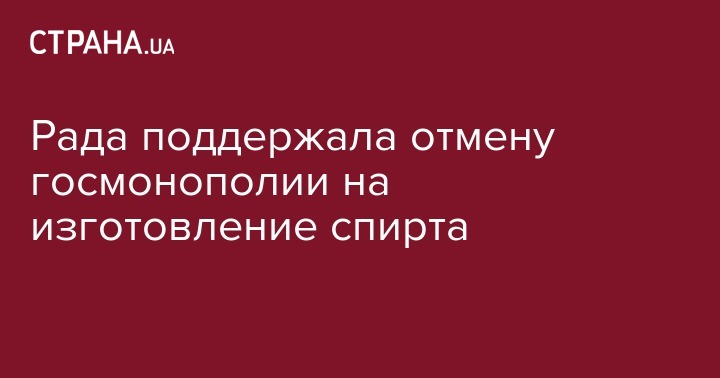 Верховная Рада украины в пятницу, 15 ноября, приняла в первом чтении законопроект №2300 президента Украины Владимира Зеленского об отмене с 1 января 2020 года государственной монополии на производство спирта. Об этом сообщает "Интерфакс-Украина".