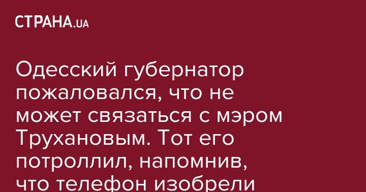 Одесский губернатор пожаловался, что не может связаться с мэром Трухановым. Тот его потроллил, напомнив, что телефон изобрели еще 143 года назад