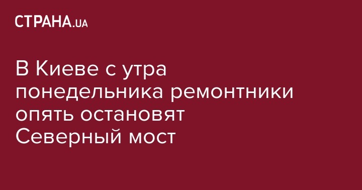 В Киеве с утра понедельника ремонтники опять остановят Северный мост