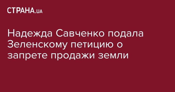 Надежда Савченко подала Зеленскому петицию о запрете продажи земли