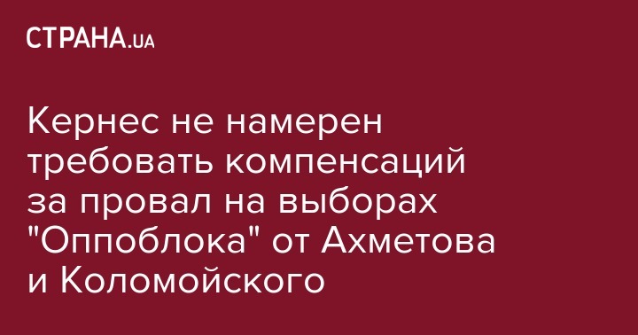 На вопрос о том, предъявлял ли он потом претензии Коломойскому и Ахметову, которые курировали Оппоблок, за провал партии на выборах, Кернес ответил: "Нет. Я обеспеченный человек. Как вы можете мне такие вопросы задавать? Какие компенсации?".
