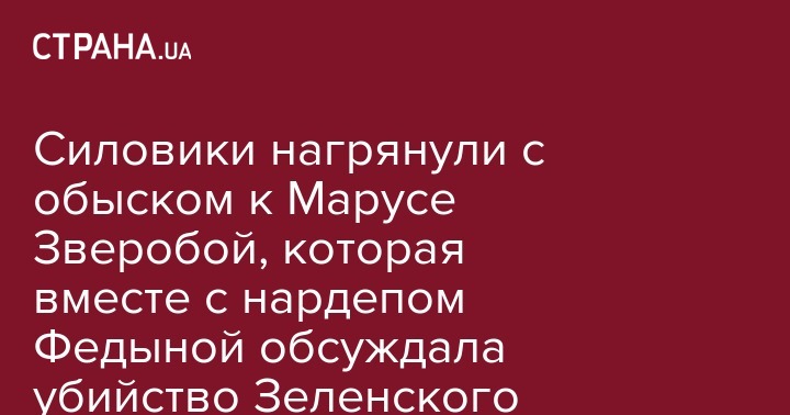 Силовики нагрянули с обыском к Марусе Зверобой, которая вместе с нардепом Федыной обсуждала убийство Зеленского