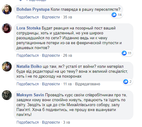 Пользователи Facebook в комментариях к другим сообщениям модной журналистки начали активно выражать возмущение ее позицией. Люди, в частности, интересуются, когда ее уволят или когда она переедет в РФ.