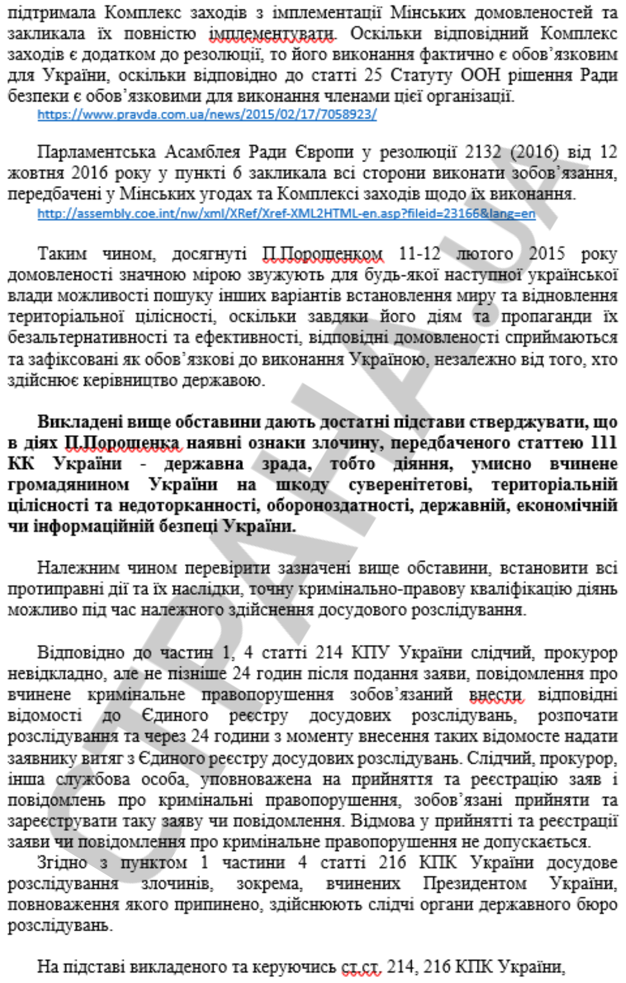 Таким образом Портнов трактует согласование Порошенко Минских договоренностей как госизмену в пользу России (статья 111 УК Украины).