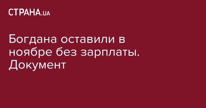 Руководителю Офиса Президента Андрею Богдану за ноябрь было начислено 46 тысяч гривен зарплаты, однако она не была ему выплачена. Напомним, что Богдан и его команда проработали бесплатно первые три месяца.