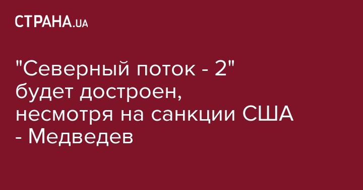 Премьер-министр Российской Федерации Дмитрий Медведев заявил, что газопровод "Северный поток - 2" будет достроен, несмотря на санкции США, причем задержка составит несколько месяцев. Об этом сообщает ТАСС.
