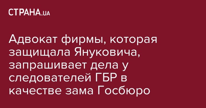 Адвокат фирмы, которая защищала Януковича, запрашивает дела у следователей ГБР в качестве зама Госбюро