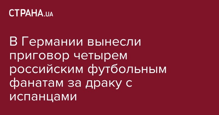В Германии земельный суд Кельна приговорил четырех футбольных болельщиков из России к условным срокам по обвинению в нападении на испанских туристов в середине июня. Все они получили от 10 месяцев до года условно. Об этом сообщает BBC.