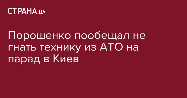 Президент заявил, что на параде на День независимости Украины не будет техники из зоны АТО. Об этом сообщает "112 Украина".