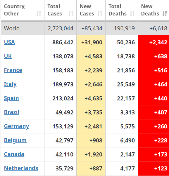 10:56 За сутки в мире выявили 80 437 новых случаев Covid-19. Общее число зараженных достигло 2 710 238 человек