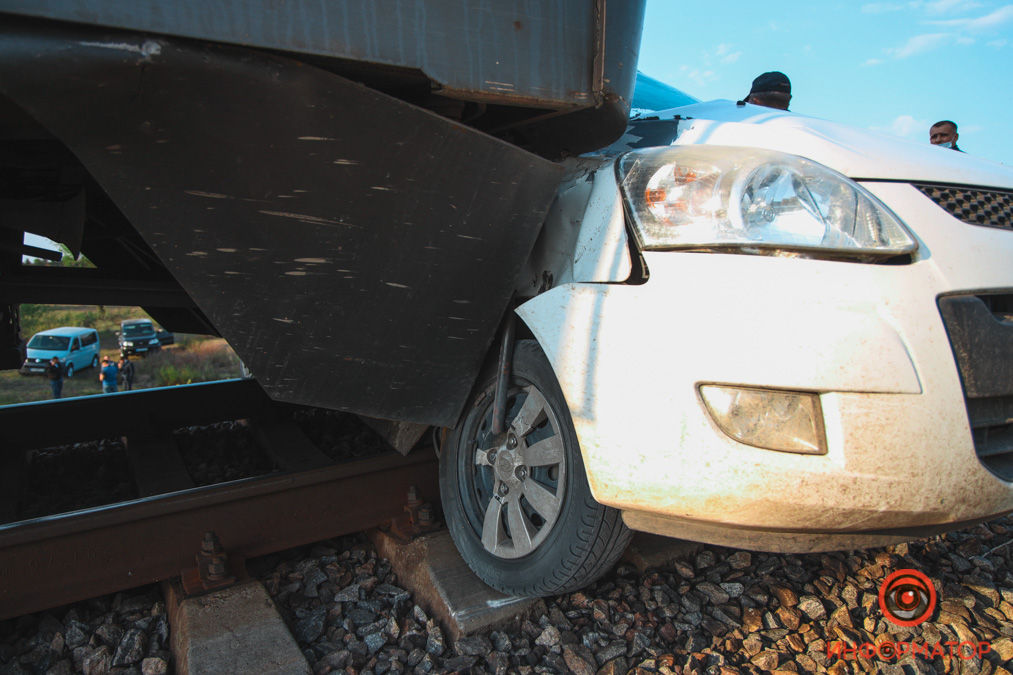 Под Днепром поезд протаранил легковушку и тащил ее сотни метров, погибли пожилые супруги