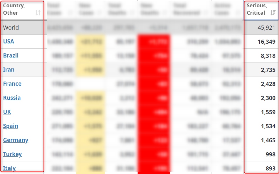 07:56 А вот топ-10 стран с пациентами в критическом состоянии. Лидируют США и Бразилия, Россия на 5 месте, также в списке полно европейцев.