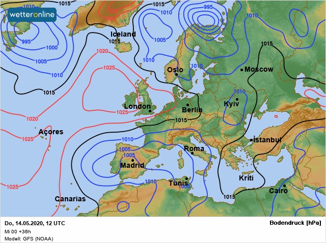 "Уже завтра (14 мая - Ред.) циклоничность над севером Скандинавии и масштабная циклоническая область над Средиземноморьем объединятся, прорвут оборону антициклона над нами снова - циклон с атмосферными фронтами", - написала синоптик.
