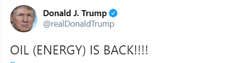 "Нефть возвращается!!!", - написал он в своем микроблоге в Twitter.