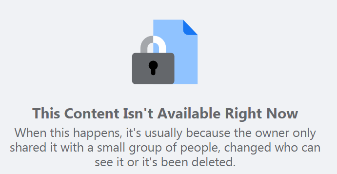 Теперь вместо страницы журналиста Facebook показывает сообщение о том, что "этот контент сейчас недоступен":