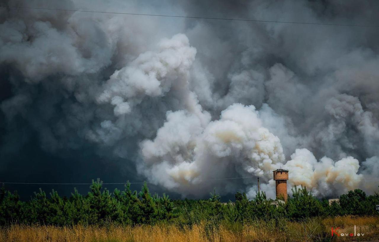 По словам председателя Луганской областной государственной администрации Сергея Гайдая, пожар тушит техника из Луганска, Харькова, Днепра и Донецкой области. А военные помогают властям людьми.