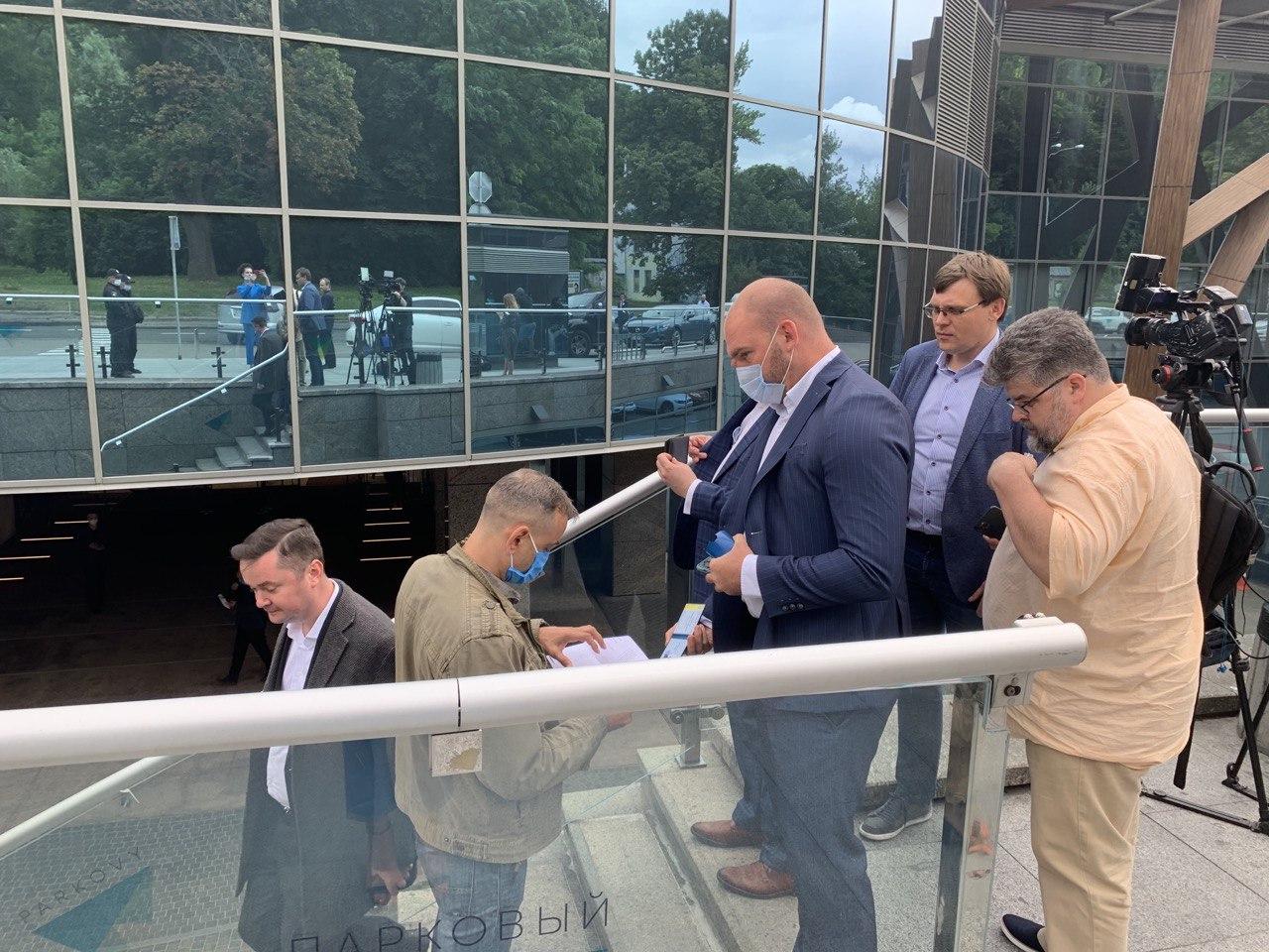Сейчас вниз пропускают только депутатов и только по списку. Из-за этого журналисты вынуждены стоять фактически на верхнем паркинге.