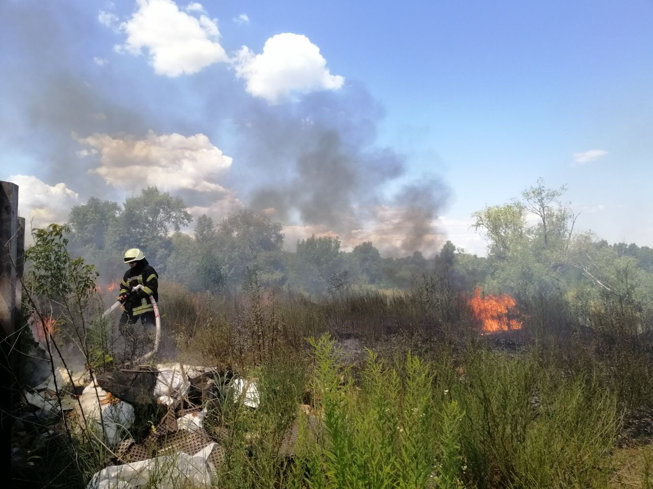 В Киеве мужчина устроил масштабный пожар посреди поля на Оболони. Фото
