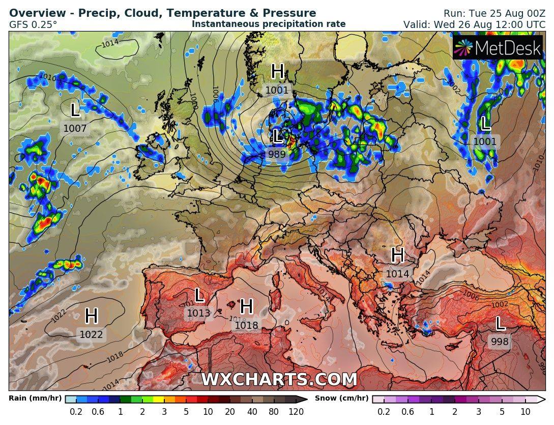 "26 августа, гребень высокого атмосферного давления вытеснит эту репетицию осени, которая происходит в западных и северных областях, и организует практически во всех областях Украины сухую погоду", - написала синоптик.
