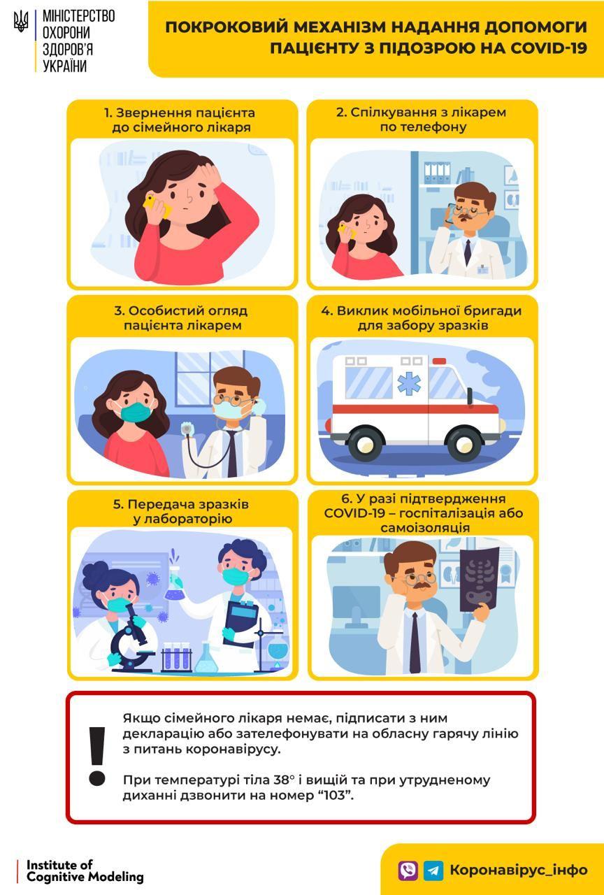 Министерство здравоохранения Украины поделилось алгоритмом действий, которые необходимо проделать при оказании помощи пациенту с подозрением на коронавирусную болезнь.