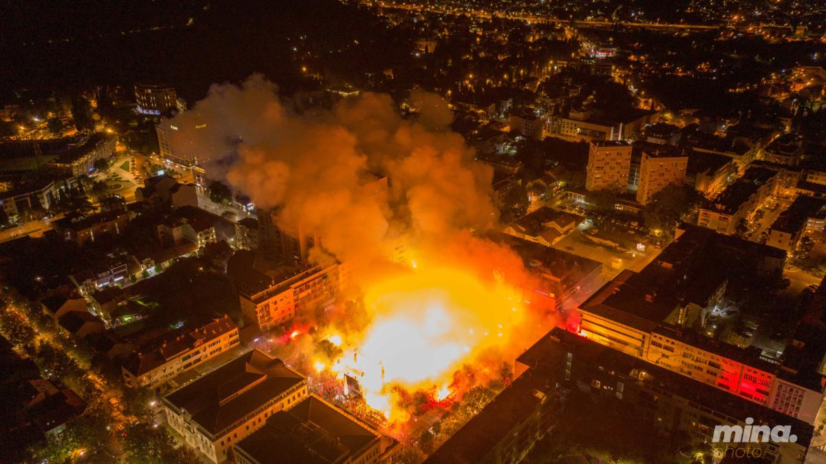 На площади Независимости в Подгорице собрались люди с национальными флагами. К ним обратились активисты, призвавшие бороться за независимую Черногорию". Собравшиеся скандировали лозунги "Вива Черногория!" и "Это не Сербия!"