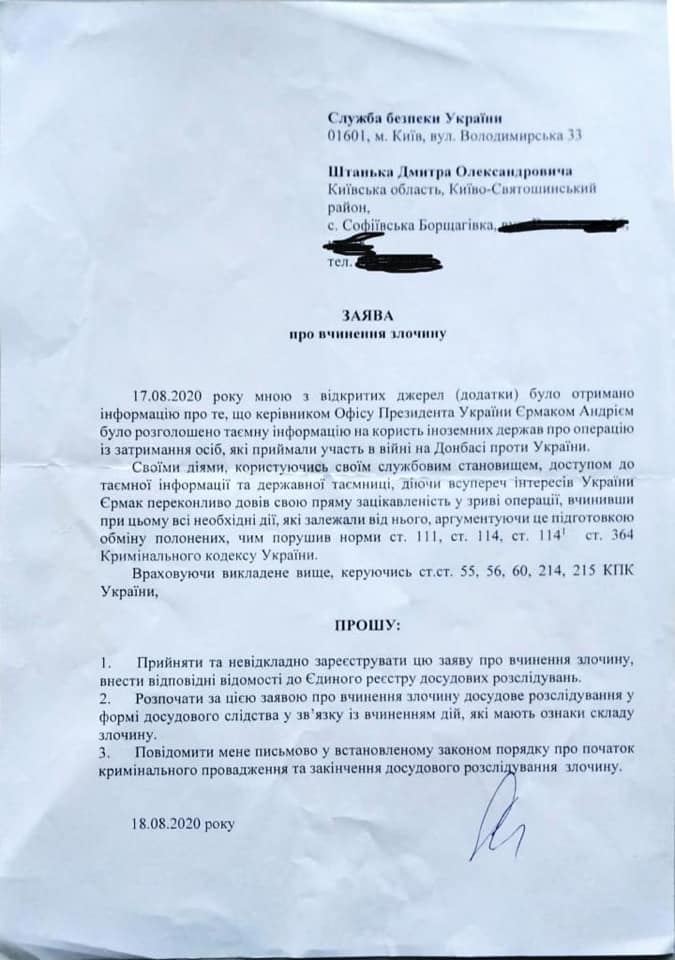 В среду, 9 сентября, Шевченковский суд Киева обязал СБУ открыть дело против главы Офиса президента Андрея Ермака.
