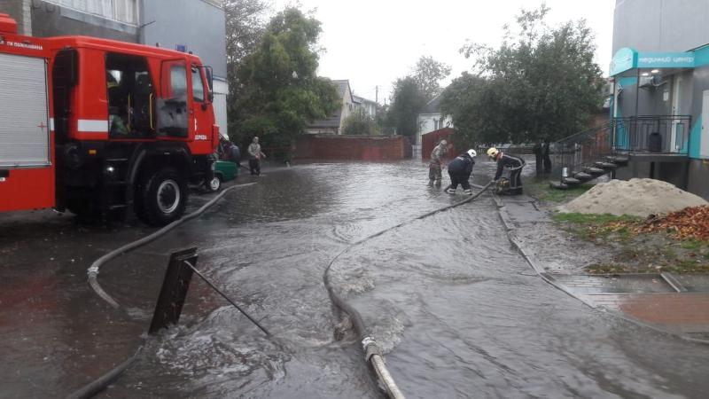 В Белой Церкви из-за сильного ливня подтопило несколько домов. Ликвидацией подтоплений занимаются местные пожарные.