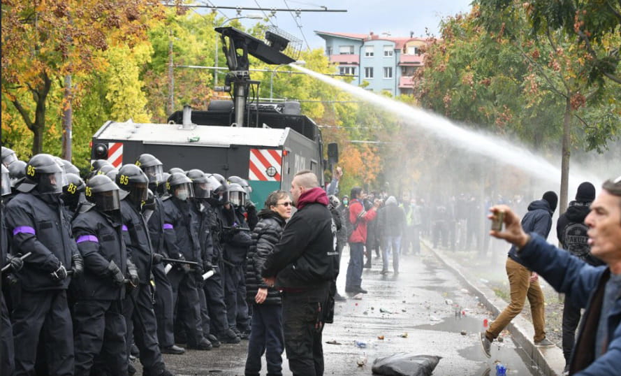 Водомет и слезоточивый газ. В Братиславе разогнали акцию протеста недовольных усилением карантина. Фото