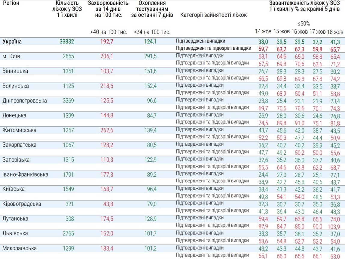По состоянию на 19 октября Киев и все 25 регионов Украины не готовы к ослаблению карантина из-за высоких показателей заболеваемости коронавирусом.