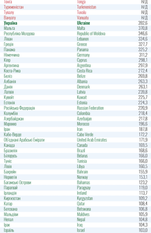 Украина вносит в "красный" список те страны, в которых количество новых случаев заражения коронавирусом на 100 тыс. населения за последние 14 дней превышает аналогичный показатель в Украине, где, по состоянию на 20 ноября этот показатель составляет 392,6 на 100 тыс. населения.