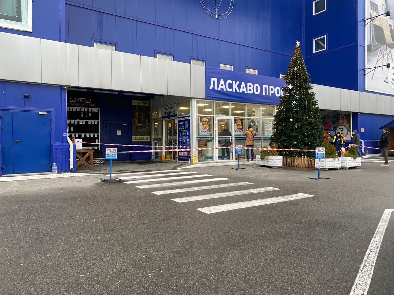 "Эпицентр" в поселке Петропавловская Борщаговка, что на улице Хрустальная 6, работает, однако с ограничениями. У входа установили две кассы, через которые можно заказать товар онлайн, но консультант предупреждает, что заказанный вами товар могут доставить только домой. Непосредственно на месте, в самом "Эпицентре", можно купить только товары первой необходимости, которые не попадают под ограничения.