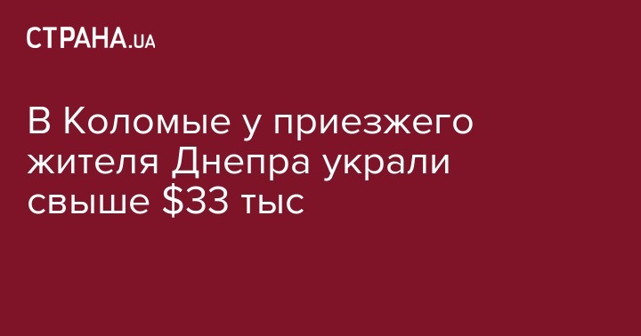 В Коломые Ивано-Франковской области из автомобиля приезжего 52-летнего жителя Днепра неизвестные украли свыше $33 тыс. Об этом сообщает телерадиокомпания НТК.