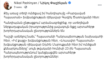 Об этом премьер-министр Никола Пашинян написал на своей странице в Facebook.