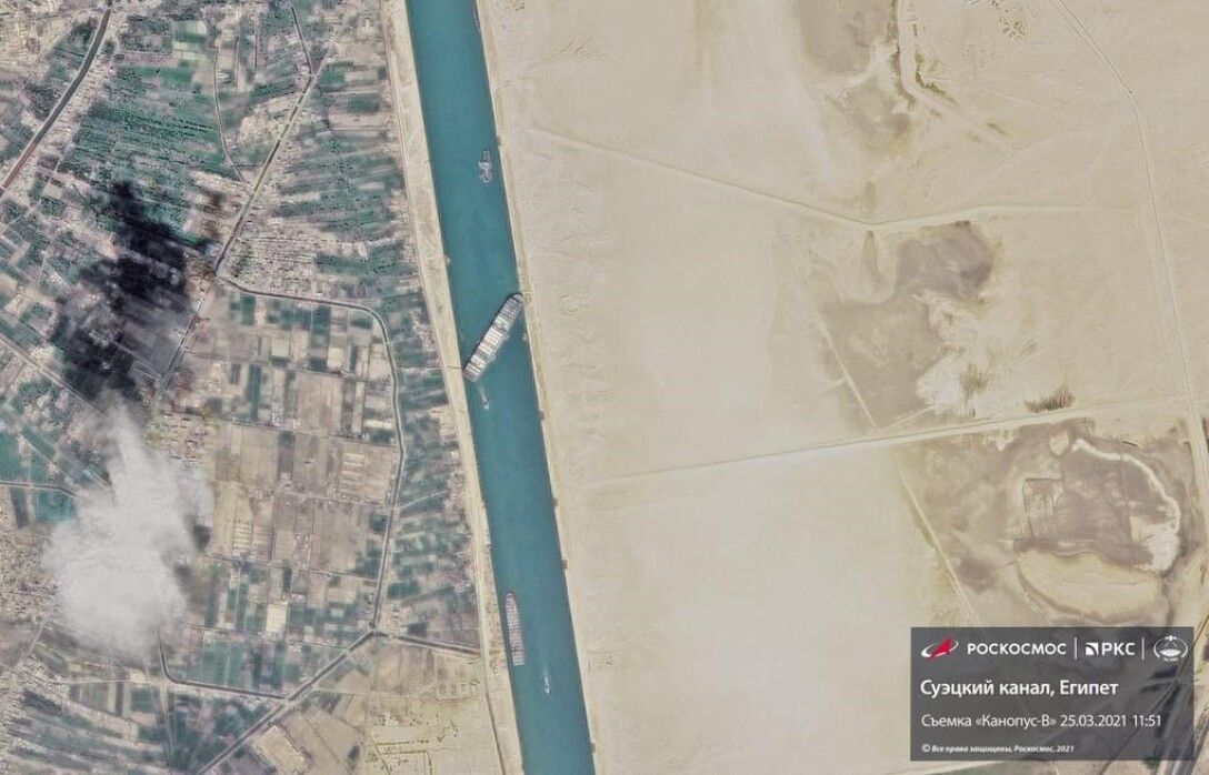 Спутниковый снимок застрявшего контейнеровоза