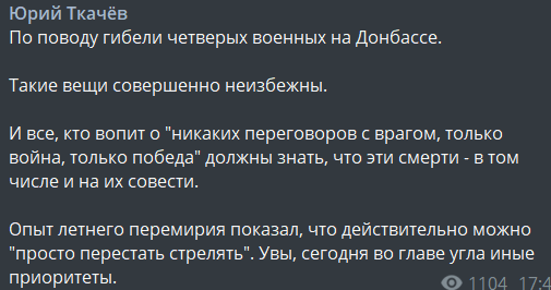 "По поводу гибели четверых военных на Донбассе. Такие вещи совершенно неизбежны.