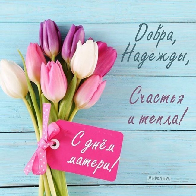 Желаю счастья и здоровья, поменьше огорчений и весеннего настроения. С Днем матери!