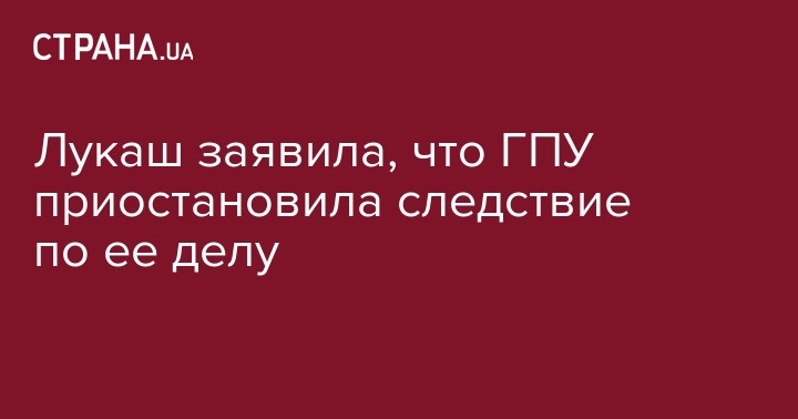Лукаш заявила, что ГПУ приостановила следствие по ее делу