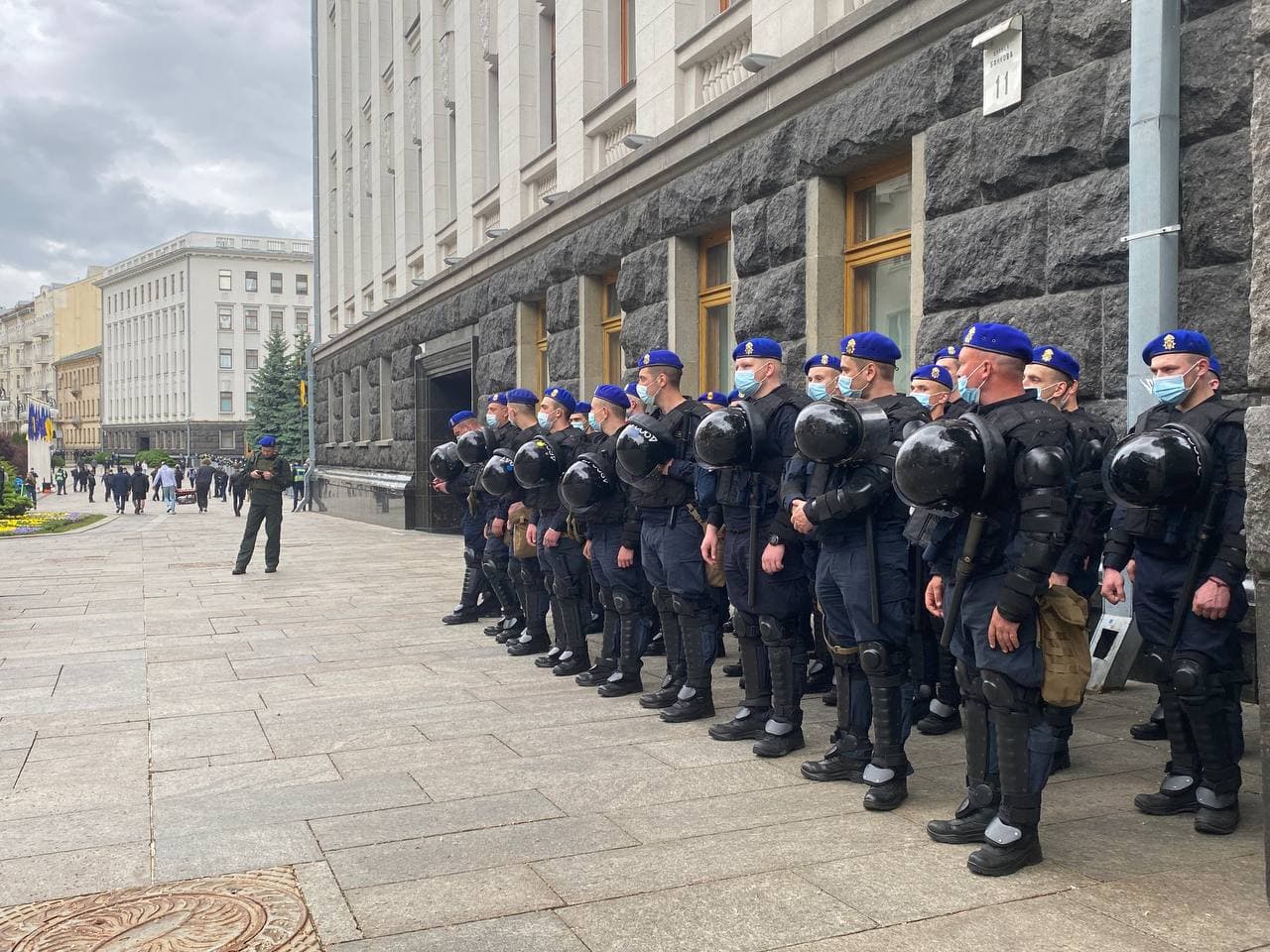 В отличии от предыдущего протеста 20 марта, сейчас Офис Президента охраняют усилено.
